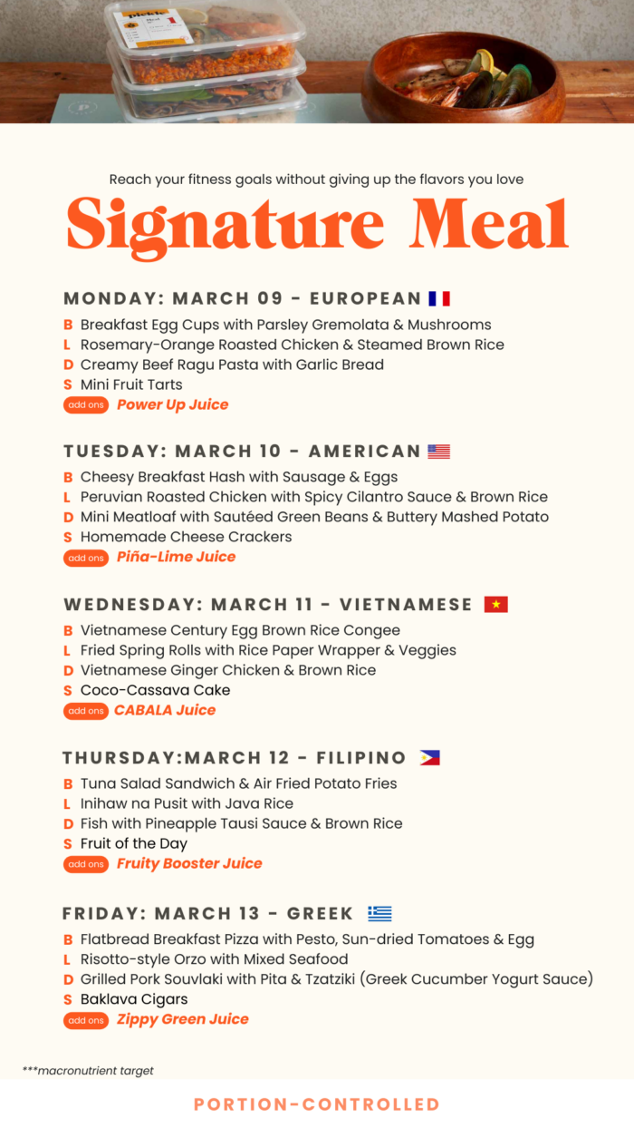 Welcome! Explore our upcoming service week with a variety of fresh, nutritious recipes crafted by our certified nutritionist-dietician, executive chef, and R&D team. Excited for you to savor these new dishes!